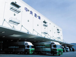 中央倉庫の物流を支えるトラックヤード